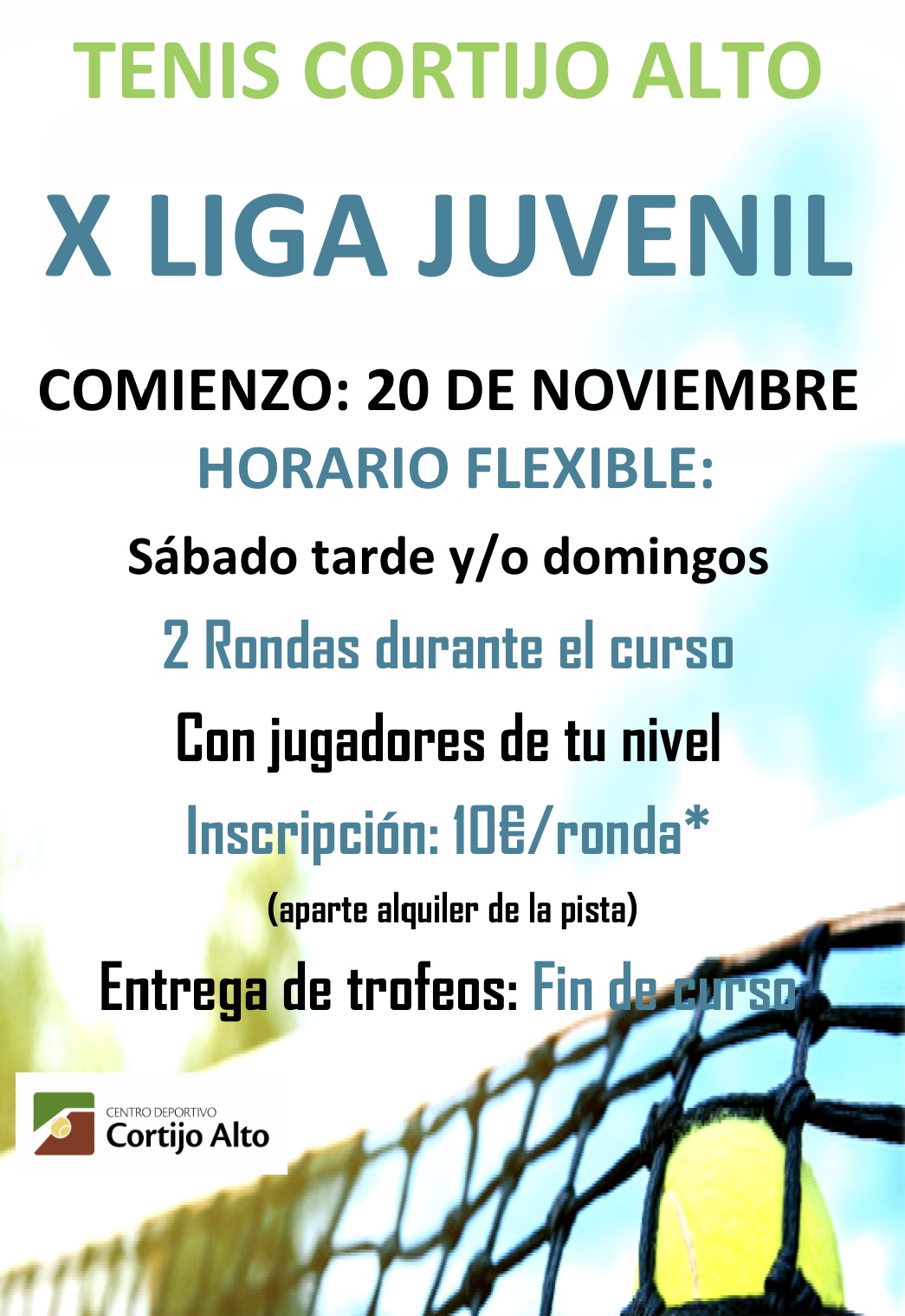 Liga tenis juvenil 2020-21 Comenzaremos la liga tenis juvenil 2020-21 a partir del 24 de octubre, programando partidos durante los mismos horarios de siempre, sabado tarde y domingo mañana. Partiremos de la clasificación obtenida por los jugadores tras la primeraLeer más